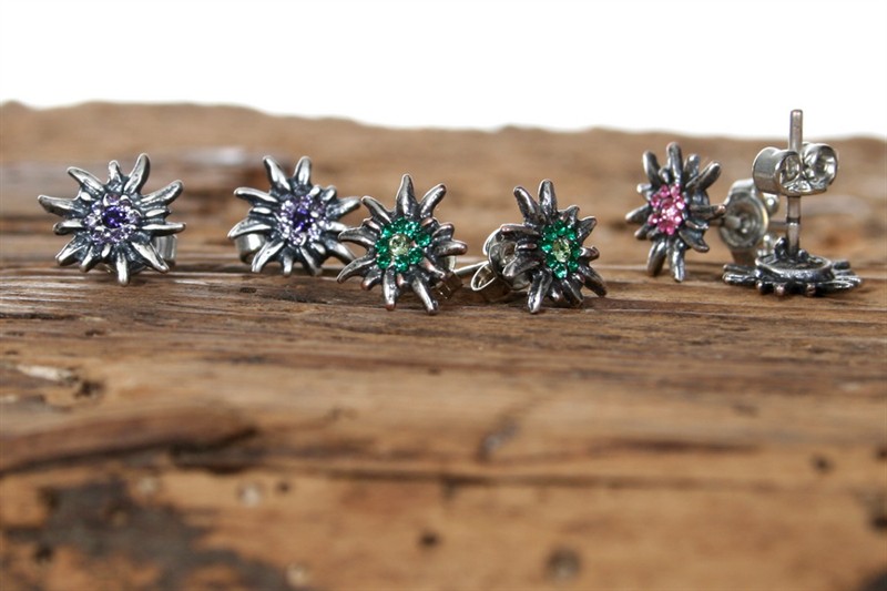 Kleine Edelweissohrstecker, ca 1cm Durchmesser.