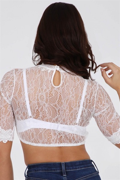 Die Dirndlbluse Pippa besticht durch einen transparenten Look und verzaubert mit einer hochwertigen Spitze.