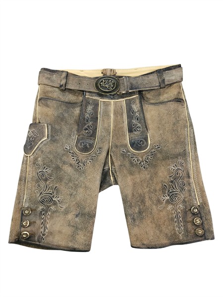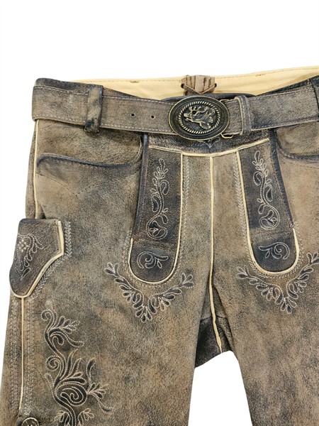 Maddox Lederhose bestickt mit Latz und H-Träger