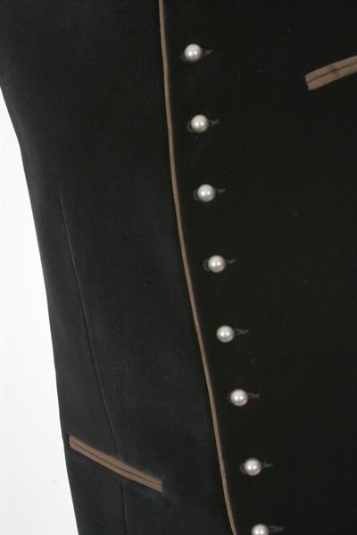 Die Trachtenweste ist vorne aus Samt. Der Rücken ist aus Baumwolle und kann noch leicht mit der Schnalle verstellt werden. Die Weste lässt sich sehr gut zu den Lederhosen kombinieren und rundet jedes Trachtenoutfit perfekt ab.