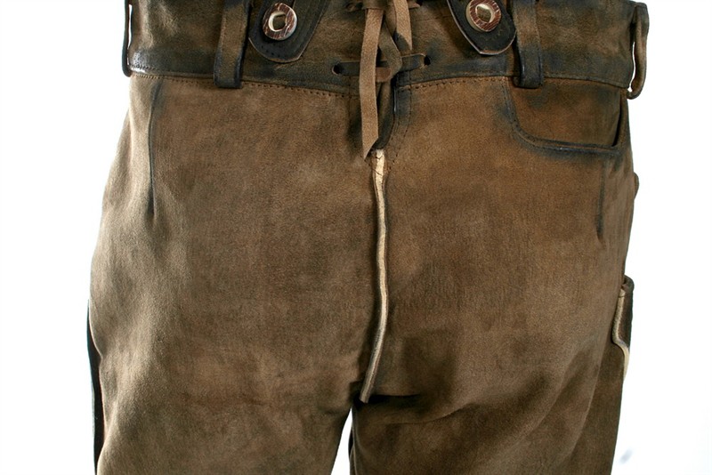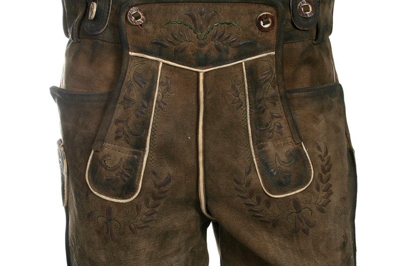 Maddox Lederhose bestickt mit Latz und H-Träger