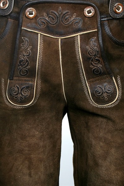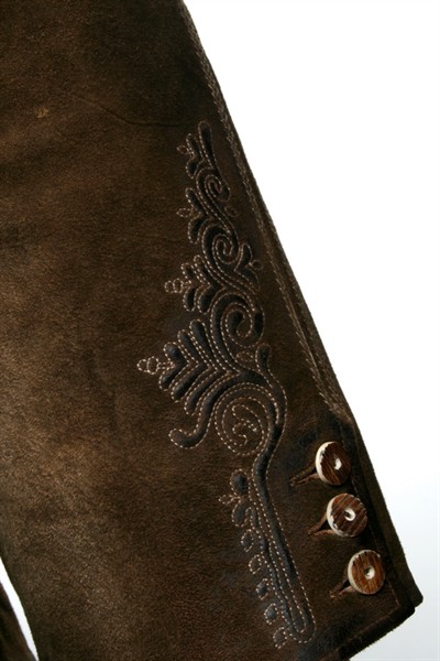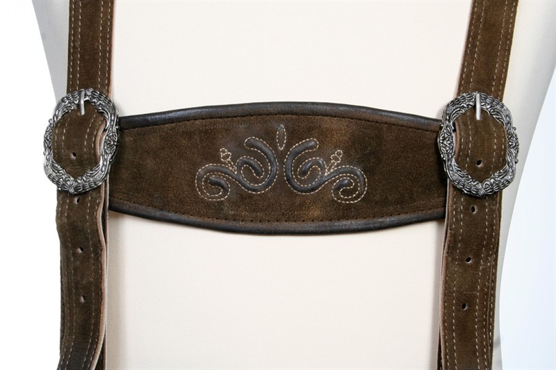 Maddox Lederhose bestickt mit Latz und H-Träger