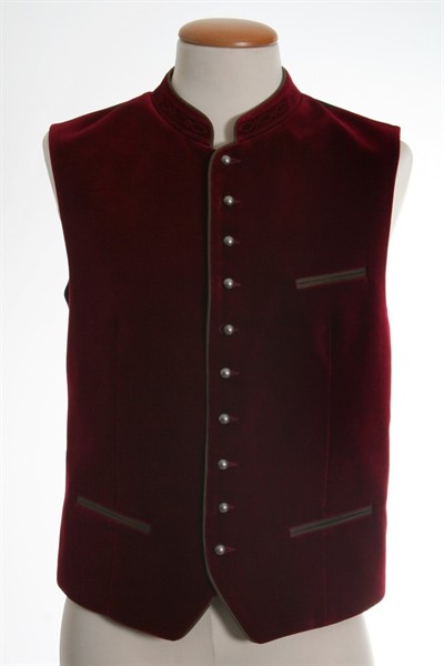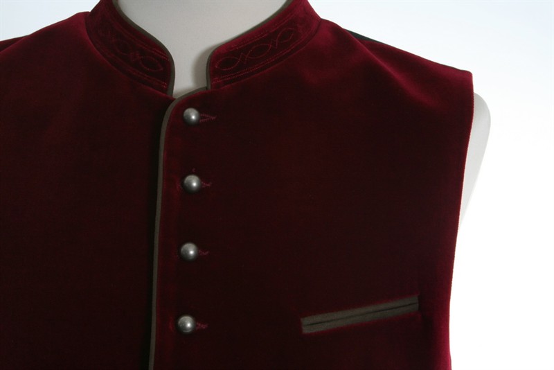 Die Trachtenweste ist vorne aus Samt. Der Rücken ist aus Baumwolle und kann noch leicht mit der Schnalle verstellt werden. Die Weste lässt sich sehr gut zu den Lederhosen kombinieren und rundet jedes Trachtenoutfit perfekt ab.