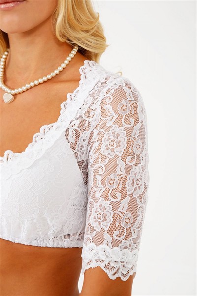 Die geschickten Verzierungen am Ausschnitt betonen das Dekolletée.